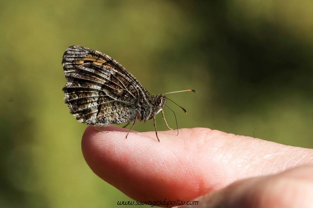 Un Mercure (Arethusana arethusa) profite des sels minéraux contenus dans la sueur.