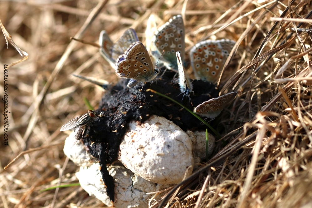 Mâles de Bel argus (Polyommatus bellargus) sur déjections animales.